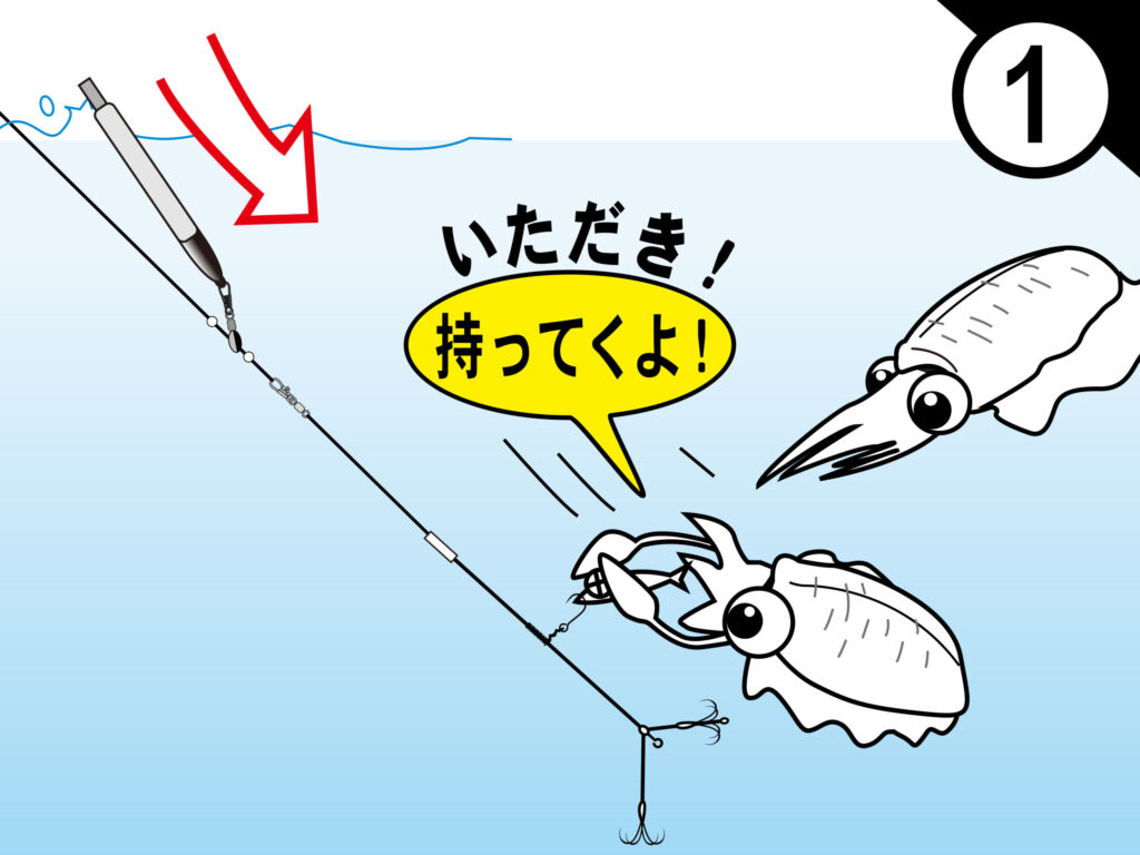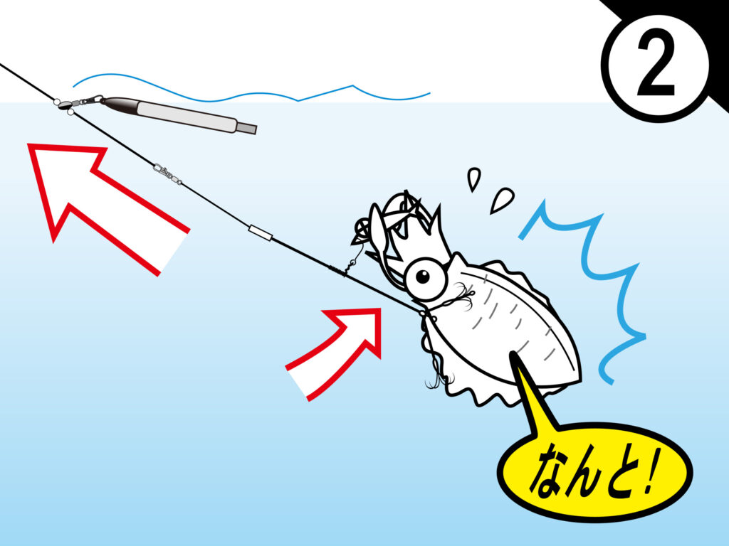 イカが逃げようとすればするほどグサリ。