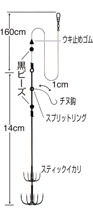 好感度自立ウキ、簡単ウキペットがセットになったお手軽イカ仕掛。