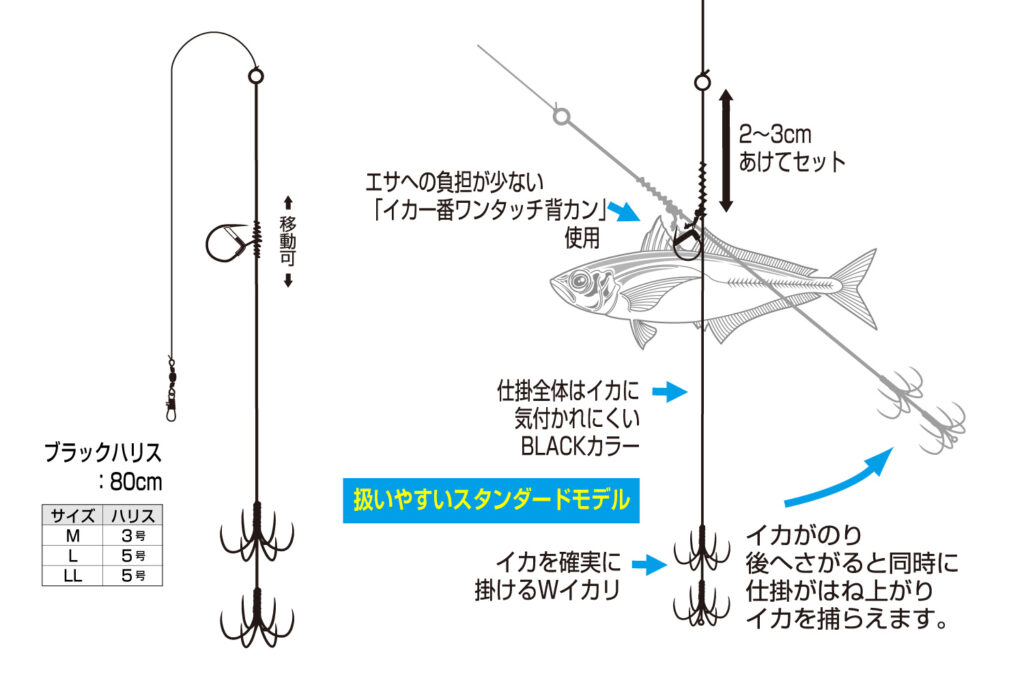 跳ね上げ式仕掛け エサが生き生き、背カンタイプでエサ持ち抜群!