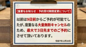 天候が怪しい場合は、来店前にHPを確認いただけると幸いです。