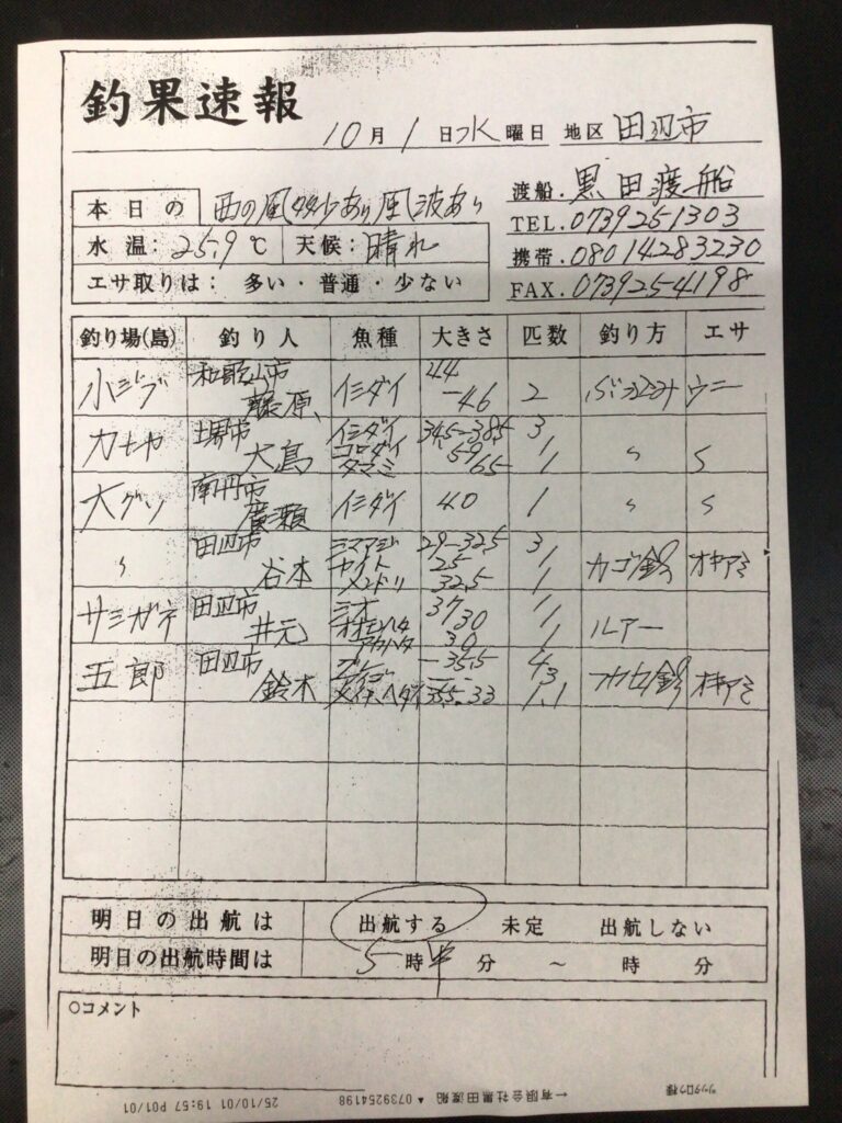 10月1日(水)田辺・黒田渡船さんの釣果 2025 10/01 【渡船釣果】みなべ・田辺エリア 2025年10月1日 【渡船釣果】みなべ・田辺エリア よかったらシェアしてね! URLをコピーしました! URLをコピーしました! 10月1日(水)すさみ町 岩元渡船さん釣果 10/2すさみ町見老津・林渡船さん釣果 この記事を書いた人 tsuttarou 関連記事 1月21日(水)みなべ町 うえひら渡船さん釣果 2026年1月21日 1/20 みなべ町 築山渡船さん釣果 2026年1月21日 1/19 みなべ町 築山渡船さん釣果 2026年1月19日 1/19 みなべ町 うえひら渡船さん釣果 2026年1月19日 1/19 田辺・黒田渡船さんの釣果 2026年1月19日 1/18(日)田辺・黒田渡船さんの釣果 2026年1月18日 1/18(日)みなべ町 築山渡船さん釣果 2026年1月18日 1/18(日)みなべ町 うえひら渡船さん釣果 2026年1月18日
