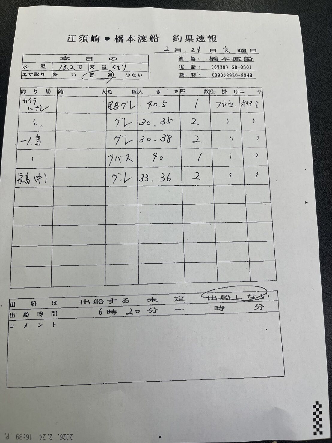 2/24すさみ町江須崎・橋本渡船さん釣果