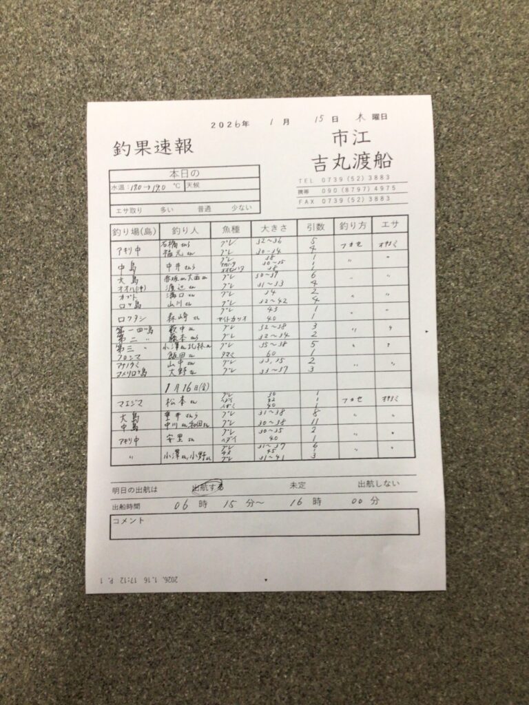 1月15・16日 白浜町市江 吉丸渡船さん釣果