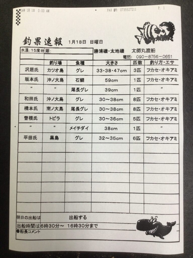 1/18太地町・太師丸渡船さん釣果 2026 1/18 【渡船釣果】串本・太地・勝浦エリア 2026年1月18日 【渡船釣果】串本・太地・勝浦エリア よかったらシェアしてね! URLをコピーしました! URLをコピーしました! 1/18すさみ町江須崎・橋本渡船さん釣果 1/18すさみ町見老津・林渡船さん釣果 この記事を書いた人 tsuttarou 関連記事 3/9 串本町出雲・小川渡船さん釣果 2026年3月9日 3/9 那智勝浦町・清丸渡船さん釣果 2026年3月9日 3/8串本町出雲・小川渡船さん釣果 2026年3月8日 3/8串本町田子・双島マリンクラブ渡船さん釣果 2026年3月8日 3/8太地町・太師丸渡船さん釣果 2026年3月8日 3/8那智勝浦町・清丸渡船さん釣果 2026年3月8日 3/7(土)すさみ町見老津・浜丸渡船さん釣果 2026年3月7日 3/7(土)串本町田子・双島マリンクラブ渡船さん釣果 2026年3月7日