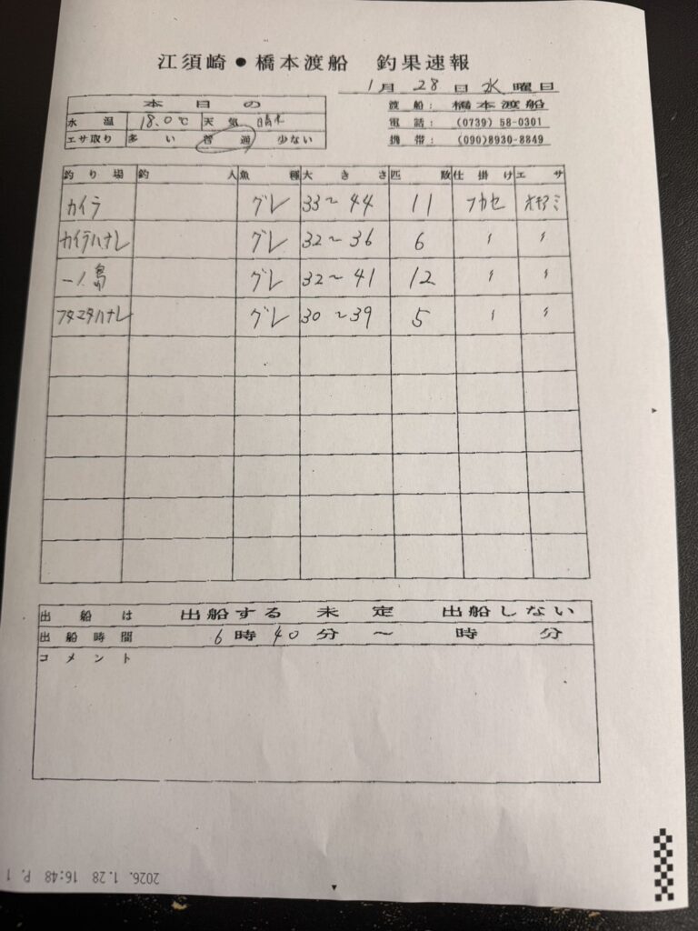 1/28 すさみ町江須崎・橋本渡船さん釣果
