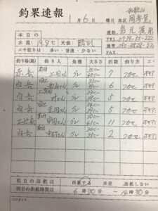 1/6太地町・太師丸渡船さん釣果 2026 1/06 【渡船釣果】串本・太地・勝浦エリア 2026年1月6日 【渡船釣果】串本・太地・勝浦エリア よかったらシェアしてね! URLをコピーしました! URLをコピーしました! 1/6 すさみ 岩元渡船さん釣果 1/6那智勝浦町・清丸渡船さん釣果 この記事を書いた人 tsuttarou 関連記事 1/11太地町・太師丸渡船さん釣果 2026年1月11日 1/11串本町出雲・小川渡船さん釣果 2026年1月11日 1/11那智勝浦町・清丸渡船さん釣果 2026年1月11日 1/10太地町・太師丸渡船さん釣果 2026年1月10日 1/10那智勝浦町・清丸渡船さん釣果 2026年1月10日 1/10串本町出雲・小川渡船さん釣果 2026年1月10日 1/10 串本町袋 かわばた渡船さん釣果 2026年1月10日 1/9 樫野・池畑渡船さんの釣果 2026年1月9日