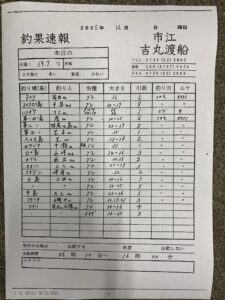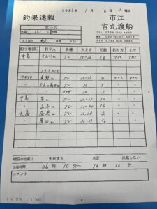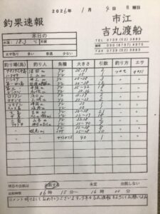 1/7白浜町市江 吉丸渡船さん釣果 2026 1/08 【渡船釣果】市江・日置・伊古木エリア 2026年1月8日 【渡船釣果】市江・日置・伊古木エリア よかったらシェアしてね! URLをコピーしました! URLをコピーしました! 1/7 田辺・黒田渡船さんの釣果 1/8太地町・太師丸渡船さん釣果 この記事を書いた人 tsuttarou 関連記事 1/6市江吉丸渡船さん釣果 2026年1月7日 白浜町市江 吉丸渡船さん釣果 2026年1月6日 1/4(日)白浜町市江 吉丸渡船さん釣果 2026年1月4日 12/28白浜町市江 吉丸渡船さん釣果 2025年12月28日 12/27 白浜町市江 吉丸渡船さん釣果 2025年12月27日 12/23日置・三倉渡船さん釣果 2025年12月23日 12/18白浜町市江 吉丸渡船さん釣果 2025年12月19日 12/16 白浜町市江 吉丸渡船さん釣果 2025年12月16日