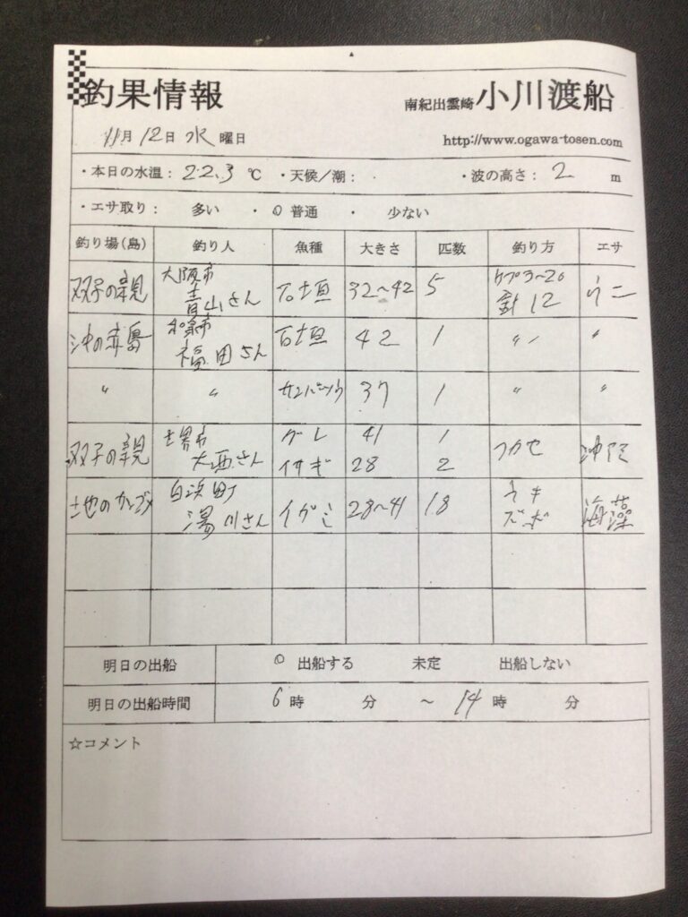 11/12 串本町出雲・小川渡船さん釣果 2025 11/12 釣果情報 【渡船釣果】串本・太地・勝浦エリア 2025年11月12日 釣果情報 【渡船釣果】串本・太地・勝浦エリア よかったらシェアしてね! URLをコピーしました! URLをコピーしました! 11/12太地町・太師丸渡船さん釣果 11/11 田辺・黒田渡船さんの釣果 この記事を書いた人 tsuttarou 関連記事 1/11太地町・太師丸渡船さん釣果 2026年1月11日 1/11串本町出雲・小川渡船さん釣果 2026年1月11日 1/11那智勝浦町・清丸渡船さん釣果 2026年1月11日 1/10太地町・太師丸渡船さん釣果 2026年1月10日 1/10那智勝浦町・清丸渡船さん釣果 2026年1月10日 1/10串本町出雲・小川渡船さん釣果 2026年1月10日 1/10 串本町袋 かわばた渡船さん釣果 2026年1月10日 1/9 すさみ町見老津・林渡船さん釣果 2026年1月9日