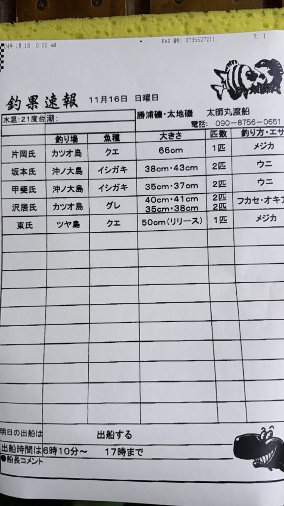 11/16太地町・太師丸渡船さん釣果 2025 11/16 【渡船釣果】串本・太地・勝浦エリア 2025年11月16日 【渡船釣果】串本・太地・勝浦エリア よかったらシェアしてね! URLをコピーしました! URLをコピーしました! 11/16串本町出雲・小川渡船さん釣果 11/16すさみ町江須崎・酒井渡船さん釣果 この記事を書いた人 tsuttarou 関連記事 1/21 那智勝浦町・清丸渡船さん釣果 2026年1月22日 1/22 太地町・太師丸渡船さん釣果 2026年1月22日 1/22 串本町出雲・小川渡船さん釣果 2026年1月22日 1/21串本町樫野・池畑渡船さん釣果 2026年1月21日 串本町袋 かわばた渡船さん釣果 2026年1月20日 1/20那智勝浦町・清丸渡船さん釣果 2026年1月20日 1/20串本町出雲・小川渡船さん釣果 2026年1月20日 1/19那智勝浦町・清丸渡船さん釣果 2026年1月19日