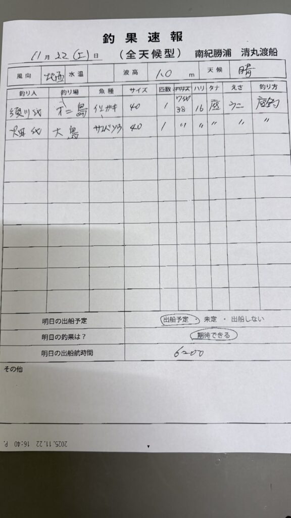 11/22那智勝浦町・清丸渡船さん釣果 2025 11/22 【渡船釣果】串本・太地・勝浦エリア 2025年11月22日 【渡船釣果】串本・太地・勝浦エリア よかったらシェアしてね! URLをコピーしました! URLをコピーしました! 11/22すさみ町江須崎・酒井渡船さん釣果 11/22串本町田子・双島マリンクラブ渡船さん釣果 この記事を書いた人 tsuttarou 関連記事 12/13太地町・太師丸渡船さん釣果 2025年12月13日 12/13すさみ町江須崎・酒井渡船さん釣果 2025年12月13日 12/13串本町田子・双島マリンクラブ渡船さん釣果 2025年12月13日 12/13串本町出雲・小川渡船さん釣果 2025年12月13日 12/13那智勝浦町・清丸渡船さん釣果 2025年12月13日 12/13(土)串本町袋 かわばた渡船さん釣果 2025年12月13日 12/13 串本町袋 かわばた渡船さん釣果 2025年12月13日 12/12串本町田子・双島マリンクラブ渡船さん釣果 2025年12月12日