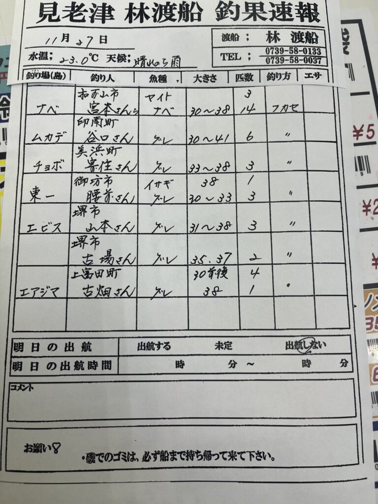 11/27すさみ町見老津・林渡船さん釣果 2025 11/27 【渡船釣果】すさみエリア 2025年11月27日 【渡船釣果】すさみエリア よかったらシェアしてね! URLをコピーしました! URLをコピーしました! 11/27串本町出雲・小川渡船さん釣果 11/28田辺・黒田渡船さんの釣果 この記事を書いた人 tsuttarou 関連記事 1/9 すさみ町見老津・林渡船さん釣果 2026年1月9日 1/9 すさみ町見老津・浜丸渡船さん釣果 2026年1月9日 1/9すさみ町江住 前田渡船さん釣果 2026年1月9日 1/9すさみ町江須崎・酒井渡船さん釣果 2026年1月9日 1/9すさみ町江須崎・橋本渡船さん釣果 2026年1月9日 1/9すさみ町 岩元渡船さん釣果 2026年1月9日 1/8すさみ町見老津・浜丸渡船さん釣果 2026年1月8日 1/7すさみ町見老津・浜丸渡船さん釣果 2026年1月7日
