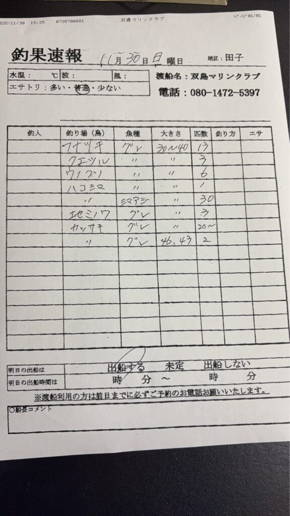 11/30串本町田子・双島マリンクラブ渡船さん釣果
