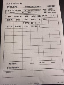 11/7 すさみ町見老津・浜丸渡船さん釣果 2025 11/07 【渡船釣果】すさみエリア 2025年11月7日 【渡船釣果】すさみエリア よかったらシェアしてね! URLをコピーしました! URLをコピーしました! 11/7 串本樫野池畑渡船さんの釣果 11/7 双島マリンクラブさんの釣果 この記事を書いた人 tsuttarou 関連記事 1/21すさみ町見老津・林渡船さん釣果 2026年1月21日 1/21すさみ町見老津・浜丸渡船さん釣果 2026年1月21日 1/21すさみ町 岩元渡船さん釣果 2026年1月21日 1/20すさみ町見老津・浜丸渡船さん釣果 2026年1月20日 1/19 すさみ町江住 前田渡船さん釣果 2026年1月19日 1/19すさみ町見老津・浜丸渡船さん釣果 2026年1月19日 1/19すさみ町見老津・林渡船さん釣果 2026年1月19日 1/19すさみ町江須崎・酒井渡船さん釣果 2026年1月19日