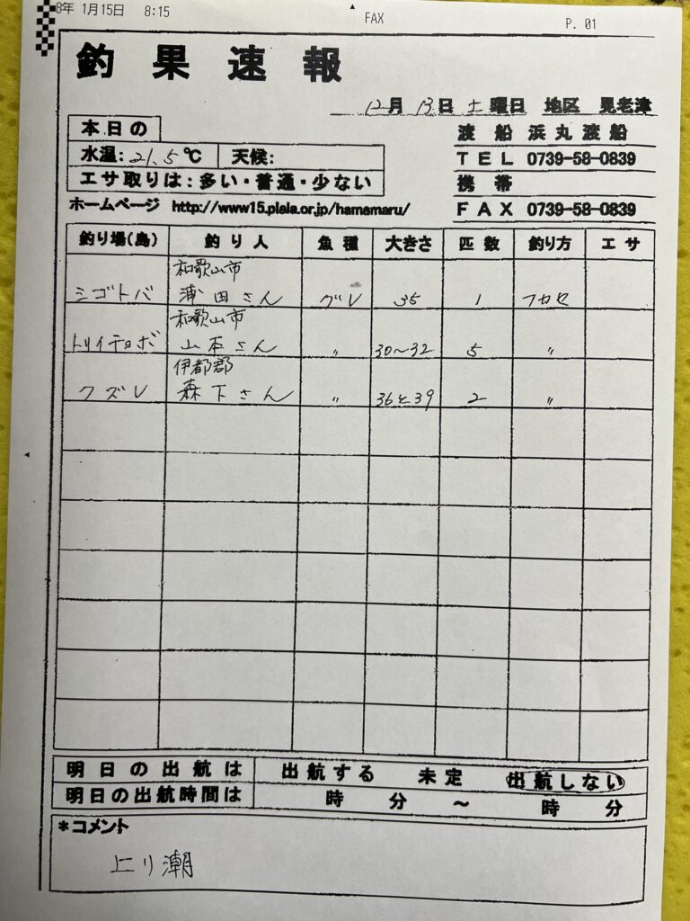 12/13すさみ町見老津・浜丸渡船さん釣果 2025 12/13 【渡船釣果】すさみエリア 未分類 2025年12月13日 【渡船釣果】すさみエリア 未分類 よかったらシェアしてね! URLをコピーしました! URLをコピーしました! 12/13(土)串本町袋 かわばた渡船さん釣果 12/13那智勝浦町・清丸渡船さん釣果 この記事を書いた人 tsuttarou 関連記事 1/9 すさみ町見老津・林渡船さん釣果 2026年1月9日 1/9 すさみ町見老津・浜丸渡船さん釣果 2026年1月9日 1/9すさみ町江住 前田渡船さん釣果 2026年1月9日 1/9すさみ町江須崎・酒井渡船さん釣果 2026年1月9日 1/9すさみ町江須崎・橋本渡船さん釣果 2026年1月9日 1/9すさみ町 岩元渡船さん釣果 2026年1月9日 1/8すさみ町見老津・浜丸渡船さん釣果 2026年1月8日 1/7すさみ町見老津・浜丸渡船さん釣果 2026年1月7日