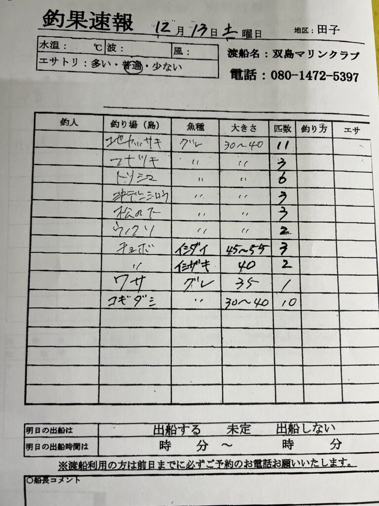 12/13串本町田子・双島マリンクラブ渡船さん釣果