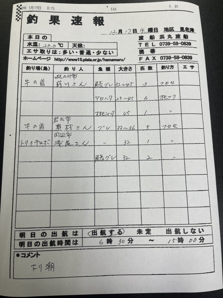 12/17すさみ町見老津・浜丸渡船さん釣果 2025 12/17 【渡船釣果】すさみエリア 2025年12月17日 【渡船釣果】すさみエリア よかったらシェアしてね! URLをコピーしました! URLをコピーしました! 12/17串本町出雲・小川渡船さん釣果 12/17すさみ町江須崎・橋本渡船さん釣果 この記事を書いた人 tsuttarou 関連記事 1/9 すさみ町見老津・林渡船さん釣果 2026年1月9日 1/9 すさみ町見老津・浜丸渡船さん釣果 2026年1月9日 1/9すさみ町江住 前田渡船さん釣果 2026年1月9日 1/9すさみ町江須崎・酒井渡船さん釣果 2026年1月9日 1/9すさみ町江須崎・橋本渡船さん釣果 2026年1月9日 1/9すさみ町 岩元渡船さん釣果 2026年1月9日 1/8すさみ町見老津・浜丸渡船さん釣果 2026年1月8日 1/7すさみ町見老津・浜丸渡船さん釣果 2026年1月7日