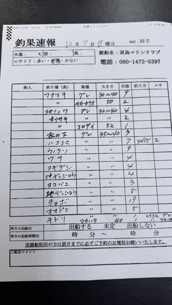 12/7串本町田子・双島マリンクラブ渡船さん釣果