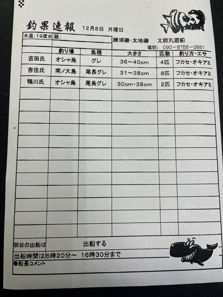 12/8太地町・太師丸渡船さん釣果 2025 12/08 【渡船釣果】串本・太地・勝浦エリア 2025年12月8日 【渡船釣果】串本・太地・勝浦エリア よかったらシェアしてね! URLをコピーしました! URLをコピーしました! 12/8串本町田子・双島マリンクラブ渡船さん釣果 12/8串本町出雲・小川渡船さん釣果 この記事を書いた人 tsuttarou 関連記事 1/21 那智勝浦町・清丸渡船さん釣果 2026年1月22日 1/22 太地町・太師丸渡船さん釣果 2026年1月22日 1/22 串本町出雲・小川渡船さん釣果 2026年1月22日 1/21串本町樫野・池畑渡船さん釣果 2026年1月21日 串本町袋 かわばた渡船さん釣果 2026年1月20日 1/20那智勝浦町・清丸渡船さん釣果 2026年1月20日 1/20串本町出雲・小川渡船さん釣果 2026年1月20日 1/19那智勝浦町・清丸渡船さん釣果 2026年1月19日
