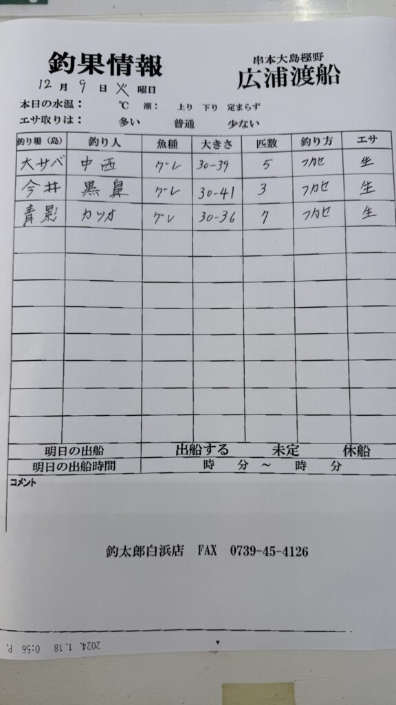 12/9串本樫野・広浦渡船さん釣果 2025 12/09 【渡船釣果】串本・太地・勝浦エリア 2025年12月9日 【渡船釣果】串本・太地・勝浦エリア よかったらシェアしてね! URLをコピーしました! URLをコピーしました! 12/9 みなべ町 うえひら渡船さん釣果 12/10すさみ町 岩元渡船さん釣果 この記事を書いた人 tsuttarou 関連記事 1/21 那智勝浦町・清丸渡船さん釣果 2026年1月22日 1/22 太地町・太師丸渡船さん釣果 2026年1月22日 1/22 串本町出雲・小川渡船さん釣果 2026年1月22日 1/21串本町樫野・池畑渡船さん釣果 2026年1月21日 串本町袋 かわばた渡船さん釣果 2026年1月20日 1/20那智勝浦町・清丸渡船さん釣果 2026年1月20日 1/20串本町出雲・小川渡船さん釣果 2026年1月20日 1/19那智勝浦町・清丸渡船さん釣果 2026年1月19日