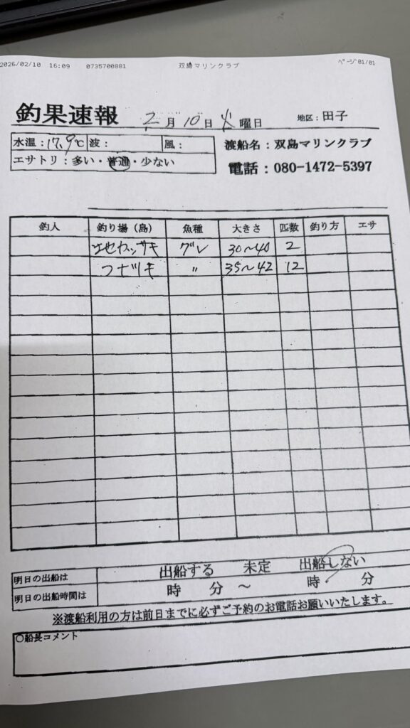 2/10串本町田子・双島マリンクラブ渡船さん釣果