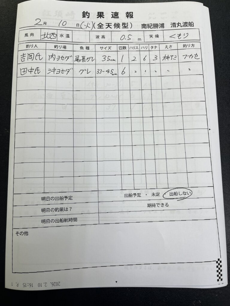 2/10那智勝浦町・清丸渡船さん釣果