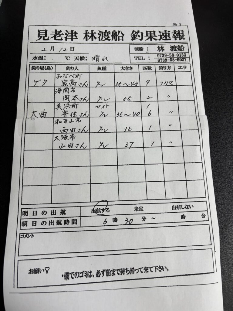 2/12 すさみ町見老津・林渡船さん釣果 2026 2/12 釣果情報 【渡船釣果】すさみエリア 2026年2月12日 釣果情報 【渡船釣果】すさみエリア よかったらシェアしてね! URLをコピーしました! URLをコピーしました! 2/12 すさみ町江須崎・酒井渡船さん釣果 2/12みなべ町 うえひら渡船さん釣果 この記事を書いた人 tsuttarou 関連記事 2/15 田辺・黒田渡船さんの釣果 2026年2月15日 2/15すさみ町江須崎・酒井渡船さん釣果 2026年2月15日 2/15 みなべ町 築山渡船さん釣果 2026年2月15日 2/15すさみ町見老津・林渡船さん釣果 2026年2月15日 2/15 みなべ町 うえひら渡船さん釣果 2026年2月15日 2/15すさみ町江須崎・橋本渡船さん釣果 2026年2月15日 2/15すさみ町見老津・浜丸渡船さん釣果 2026年2月15日 2/15 すさみ・岩元渡船さんの釣果 2026年2月15日