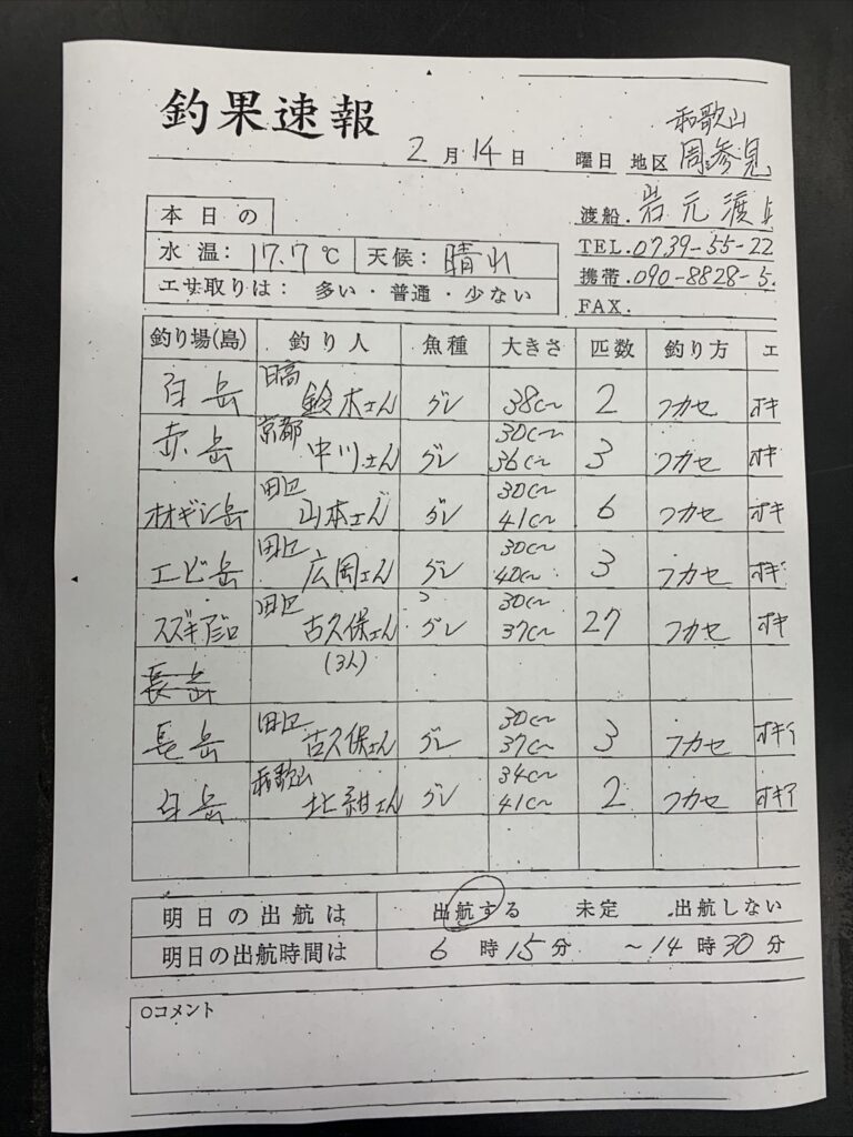 2/14 すさみ 岩元渡船さん釣果 2026 2/14 【渡船釣果】すさみエリア 2026年2月14日 【渡船釣果】すさみエリア よかったらシェアしてね! URLをコピーしました! URLをコピーしました! 2/14 すさみ江住 前田渡船さん釣果 2/14すさみ町江須崎・酒井渡船さん釣果 この記事を書いた人 tsuttarou 関連記事 2/15すさみ町江須崎・酒井渡船さん釣果 2026年2月15日 2/15すさみ町見老津・林渡船さん釣果 2026年2月15日 2/15すさみ町江須崎・橋本渡船さん釣果 2026年2月15日 2/15すさみ町見老津・浜丸渡船さん釣果 2026年2月15日 2/15 すさみ・岩元渡船さんの釣果 2026年2月15日 2/14すさみ町江須崎・橋本渡船さん釣果 2026年2月14日 2/15すさみ町見老津・林渡船さん釣果 2026年2月14日 2/14すさみ町江須崎・酒井渡船さん釣果 2026年2月14日