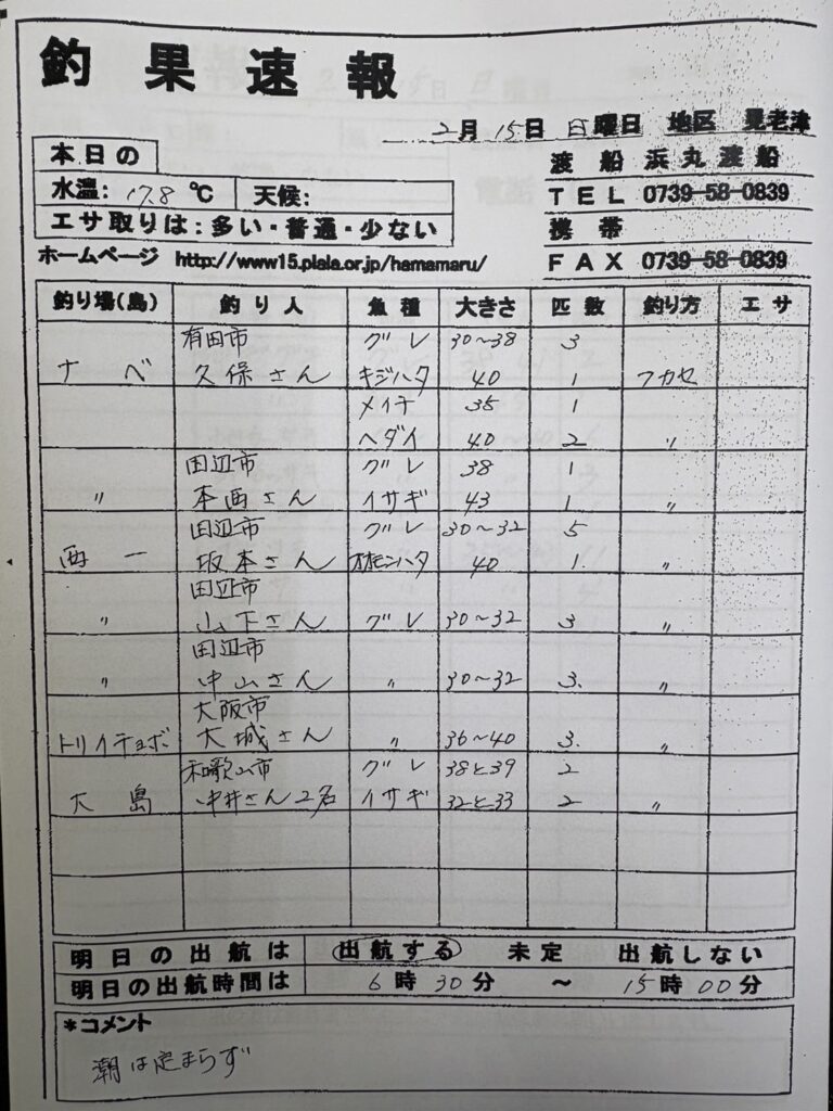 2/15すさみ町見老津・浜丸渡船さん釣果 2026 2/15 【渡船釣果】すさみエリア 2026年2月15日 【渡船釣果】すさみエリア よかったらシェアしてね! URLをコピーしました! URLをコピーしました! 2/15那智勝浦町・清丸渡船さん釣果 2/15串本町田子・双島マリンクラブ渡船さん釣果 この記事を書いた人 tsuttarou 関連記事 2/15すさみ町江須崎・酒井渡船さん釣果 2026年2月15日 2/15すさみ町見老津・林渡船さん釣果 2026年2月15日 2/15すさみ町江須崎・橋本渡船さん釣果 2026年2月15日 2/15 すさみ・岩元渡船さんの釣果 2026年2月15日 2/14すさみ町江須崎・橋本渡船さん釣果 2026年2月14日 2/15すさみ町見老津・林渡船さん釣果 2026年2月14日 2/14すさみ町江須崎・酒井渡船さん釣果 2026年2月14日 2/14 すさみ 岩元渡船さん釣果 2026年2月14日