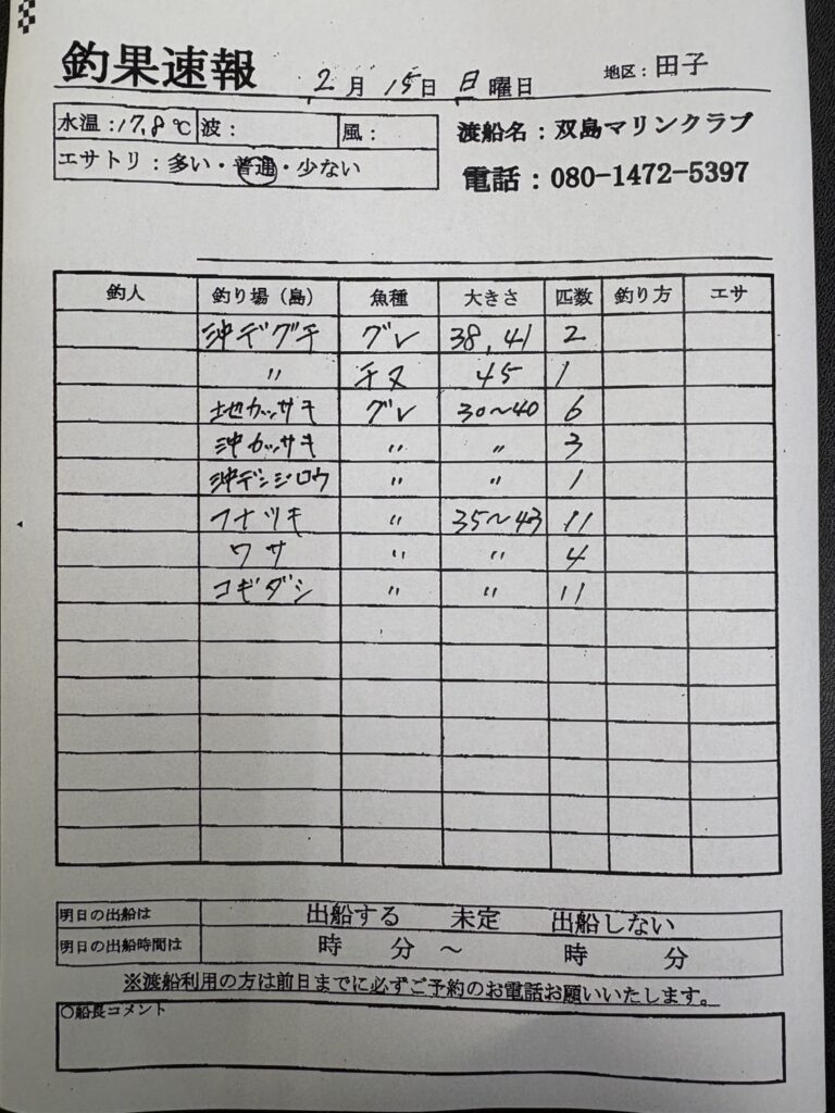 2/15串本町田子・双島マリンクラブ渡船さん釣果