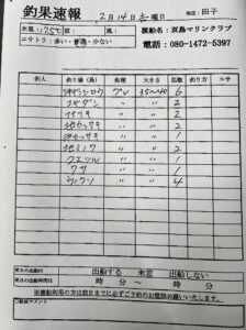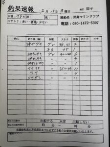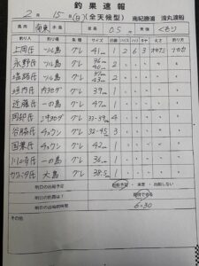 2/15太地町・太師丸渡船さん釣果 2026 2/15 【渡船釣果】串本・太地・勝浦エリア 2026年2月15日 【渡船釣果】串本・太地・勝浦エリア よかったらシェアしてね! URLをコピーしました! URLをコピーしました! 2/15 みなべ町 うえひら渡船さん釣果 2/15すさみ町見老津・林渡船さん釣果 この記事を書いた人 tsuttarou 関連記事 2/15串本町田子・双島マリンクラブ渡船さん釣果 2026年2月15日 2/15那智勝浦町・清丸渡船さん釣果 2026年2月15日 2/15串本町出雲・小川渡船さん釣果 2026年2月15日 2/15 串本・かわばた渡船さんの釣果 2026年2月15日 2/14太地町・太師丸渡船さん釣果 2026年2月14日 2/14 串本町樫野池畑渡船さんの釣果 2026年2月14日 2/14 串本町田子・双島マリンクラブ渡船さん釣果 2026年2月14日 2/14 串本町出雲・小川渡船さん釣果 2026年2月14日