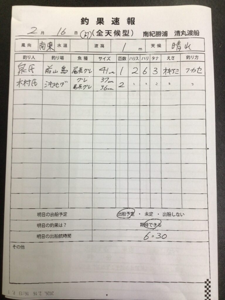 2/16那智勝浦町・清丸渡船さん釣果 2026 2/16 【渡船釣果】串本・太地・勝浦エリア 2026年2月16日 【渡船釣果】串本・太地・勝浦エリア よかったらシェアしてね! URLをコピーしました! URLをコピーしました! 2/16すさみ町江須崎・橋本渡船さん釣果 2/16串本町田子・双島マリンクラブ渡船さん釣果 この記事を書いた人 tsuttarou 関連記事 2/16串本町出雲・小川渡船さん釣果 2026年2月16日 2/16串本町田子・双島マリンクラブ渡船さん釣果 2026年2月16日 2/15太地町・太師丸渡船さん釣果 2026年2月15日 2/15串本町田子・双島マリンクラブ渡船さん釣果 2026年2月15日 2/15那智勝浦町・清丸渡船さん釣果 2026年2月15日 2/15串本町出雲・小川渡船さん釣果 2026年2月15日 2/15 串本・かわばた渡船さんの釣果 2026年2月15日 2/14太地町・太師丸渡船さん釣果 2026年2月14日