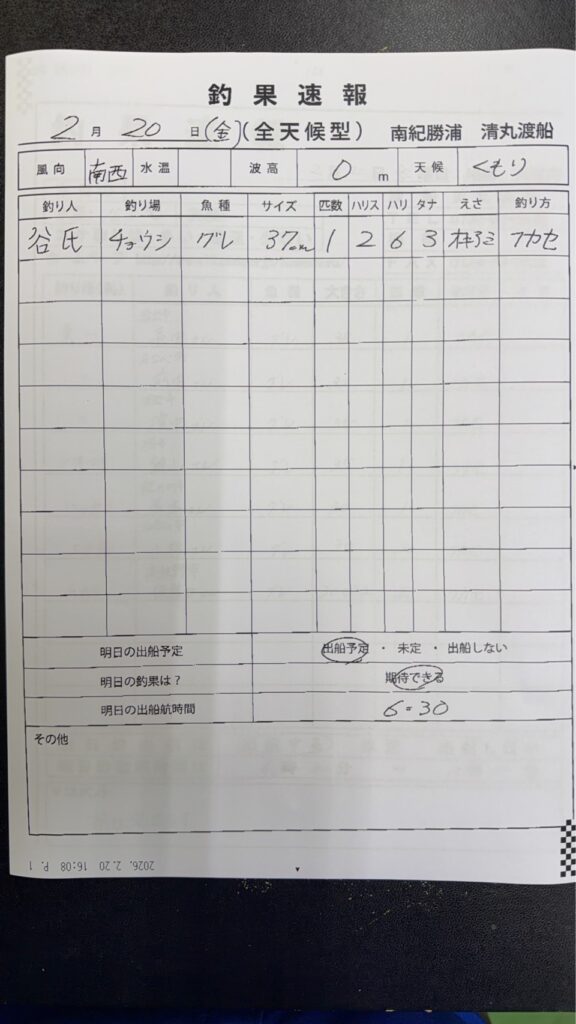 2/20 那智勝浦町・清丸渡船さん釣果 2026 2/20 【渡船釣果】串本・太地・勝浦エリア 2026年2月20日 【渡船釣果】串本・太地・勝浦エリア よかったらシェアしてね! URLをコピーしました! URLをコピーしました! 2/20すさみ町 岩元渡船さん釣果 2/20 串本町田子・双島マリンクラブ渡船さん釣果 この記事を書いた人 tsuttarou 関連記事 2/21 太地町・太師丸渡船さん釣果 2026年2月21日 2/21 串本・かわばた渡船さんの釣果 2026年2月21日 2/21 串本町田子・双島マリンクラブ渡船さん釣果 2026年2月21日 2/21 那智勝浦町・清丸渡船さん釣果 2026年2月21日 2/21 串本町出雲・小川渡船さん釣果 2026年2月21日 2/20 串本町池畑渡船さんの釣果 2026年2月20日 2/20 串本町出雲・小川渡船さん釣果 2026年2月20日 2/20 串本町田子・双島マリンクラブ渡船さん釣果 2026年2月20日