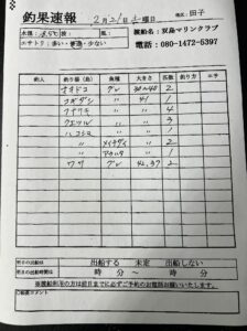 天候:晴れ 風向:特定出来ず 潮:特定できず 水温: 波:特定出来ず