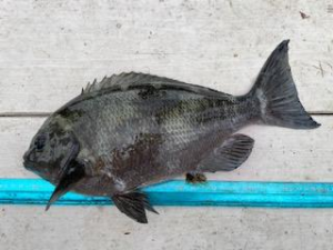 チヌ 43cm 1匹釣場 大島釣り方 フカセエサ オキアミ