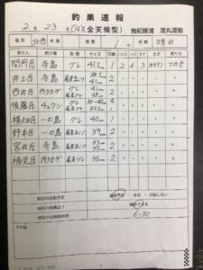天候:晴れ 風向:南 潮:下り潮 水温:19度 波:1.5
