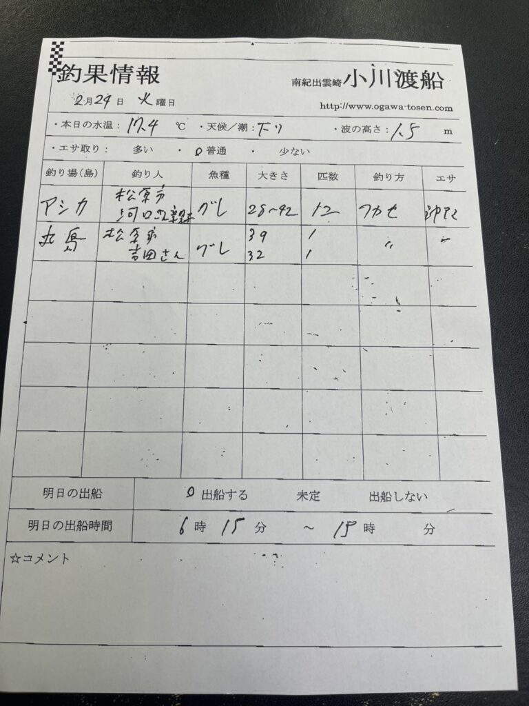 2/24串本町出雲・小川渡船さん釣果
