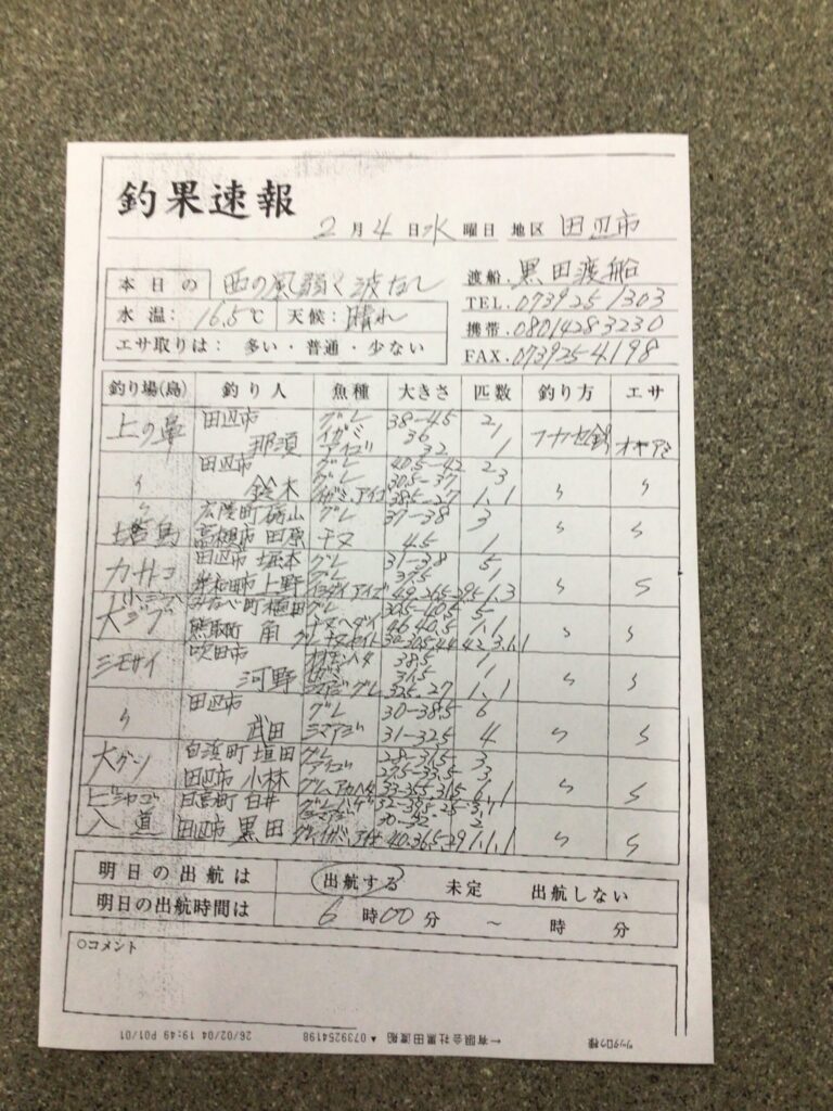 2/4田辺・黒田渡船さんの釣果 2026 2/04 【渡船釣果】みなべ・田辺エリア 2026年2月4日 【渡船釣果】みなべ・田辺エリア よかったらシェアしてね! URLをコピーしました! URLをコピーしました! 2/4みなべ町 築山渡船さん釣果 2/4 那智勝浦町・清丸渡船さん釣果 この記事を書いた人 tsuttarou 関連記事 2/6 田辺・黒田渡船さんの釣果 2026年2月6日 2/5 田辺・黒田渡船さんの釣果 2026年2月5日 2/5みなべ町 築山渡船さん釣果 3件 2026年2月5日 2/4みなべ町 築山渡船さん釣果 2026年2月4日 2/4みなべ町 築山渡船さん釣果 2026年2月4日 2/4みなべ町 うえひら渡船さん釣果 2026年2月4日 2/1 みなべ町 うえひら渡船さん釣果 2026年2月1日 2/1 田辺・黒田渡船さんの釣果 2026年2月1日