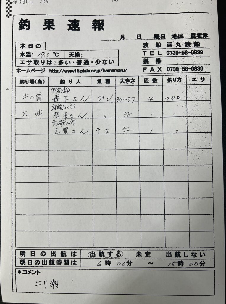3/14(土)すさみ町見老津・浜丸渡船さん釣果 2026 3/14 釣果情報 【渡船釣果】串本・太地・勝浦エリア 2026年3月14日 釣果情報 【渡船釣果】串本・太地・勝浦エリア よかったらシェアしてね! URLをコピーしました! URLをコピーしました! 3/14(土)那智勝浦町・清丸渡船さん釣果 3/14 みなべ町 築山渡船さん釣果 この記事を書いた人 tsuttarou 関連記事 3/14 みなべ町 うえひら渡船さん釣果 2026年3月14日 3/14 みなべ町 築山渡船さん釣果 2026年3月14日 3/14(土)那智勝浦町・清丸渡船さん釣果 2026年3月14日 3/13 すさみ町見老津・浜丸渡船さん釣果 2026年3月13日 3/13 串本町出雲・小川渡船さん釣果 2026年3月13日 3/12 すさみ 江須崎・橋本渡船さん釣果 2026年3月12日 3/12 すさみ 江須崎・酒井渡船(正富丸)さん釣果 2026年3月12日 3/12串本町出雲・小川渡船さん釣果 2026年3月12日