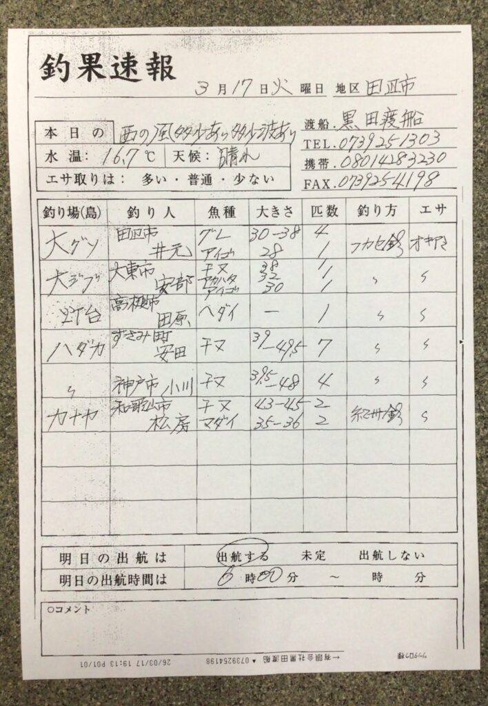 3/17 田辺・黒田渡船さんの釣果