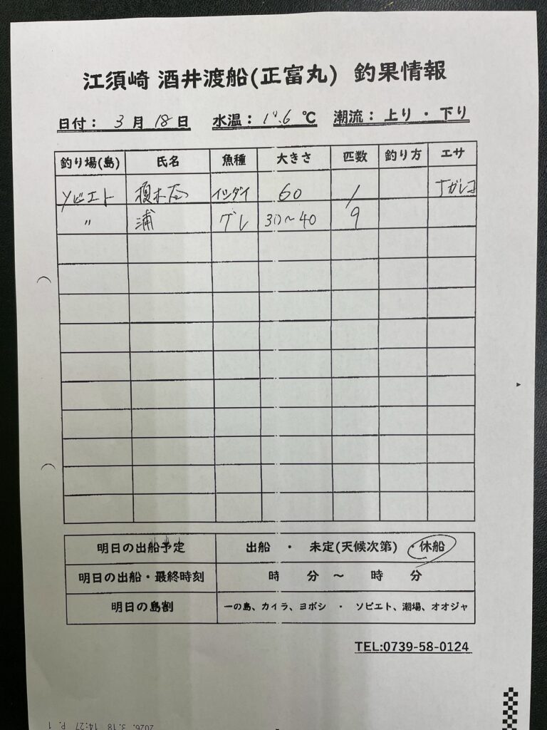 3/18 すさみ町江須崎・酒井渡船さん釣果 2026 3/19 釣果情報 【渡船釣果】すさみエリア 2026年3月19日 釣果情報 【渡船釣果】すさみエリア よかったらシェアしてね! URLをコピーしました! URLをコピーしました! 3/17 みなべ町 うえひら渡船さん釣果 3/18 すさみ町見老津・浜丸渡船さん釣果 この記事を書いた人 tsuttarou 関連記事 3/18 すさみ町見老津・林渡船さん釣果 2026年3月19日 3/18 串本町田子・双島マリンクラブ渡船さん釣果 2026年3月19日 3/18 すさみ町見老津・浜丸渡船さん釣果 2026年3月19日 3/17すさみ町見老津・浜丸渡船さん釣果 2026年3月17日 3/17すさみ町見老津・林渡船さん釣果 2026年3月17日 3/16すさみ町見老津・浜丸渡船さん釣果 2026年3月16日 3/16 串本町田子・双島マリンクラブ渡船さん釣果 2026年3月16日 3/16 すさみ町見老津・林渡船さん釣果 2026年3月16日