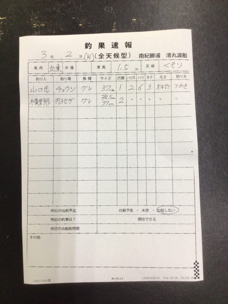 3/2 那智勝浦町・清丸渡船さん釣果 2026 3/02 釣果情報 【渡船釣果】串本・太地・勝浦エリア 2026年3月2日 釣果情報 【渡船釣果】串本・太地・勝浦エリア よかったらシェアしてね! URLをコピーしました! URLをコピーしました! 3/1(日)串本町袋 かわばた渡船さん釣果 3/2串本町出雲・小川渡船さん釣果 この記事を書いた人 tsuttarou 関連記事 3/2 すさみ町江須崎・酒井渡船さん釣果 2026年3月2日 3/2 すさみ町見老津・浜丸渡船さん釣果 2026年3月2日 3/2 すさみ町江須崎・橋本渡船さん釣果 2026年3月2日 3/2 串本町田子・双島マリンクラブ渡船さん釣果 2026年3月2日 3/2串本町出雲・小川渡船さん釣果 2026年3月2日 3/1(日)串本町袋 かわばた渡船さん釣果 2026年3月1日 3/1串本町田子・双島マリンクラブ渡船さん釣果 2026年3月1日 3/1太地町・太師丸渡船さん釣果 2026年3月1日