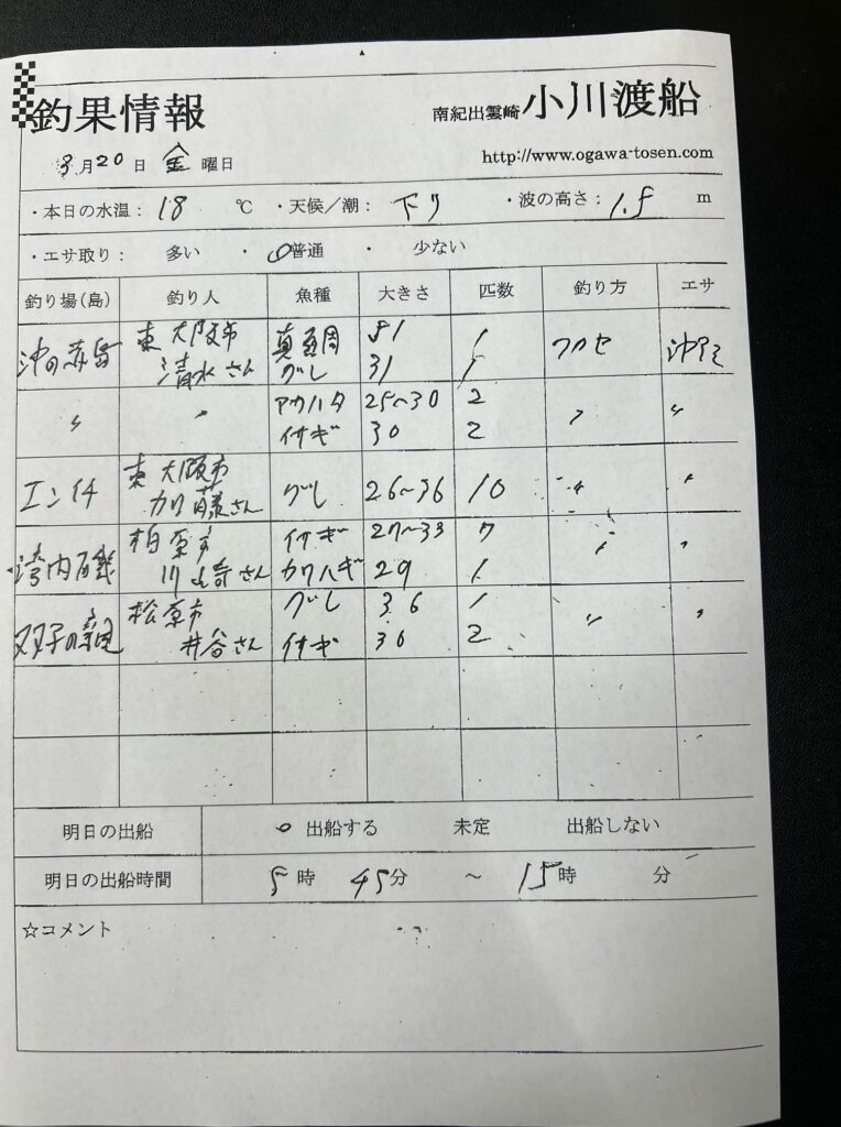 3/20(金)串本町出雲・小川渡船さん釣果
