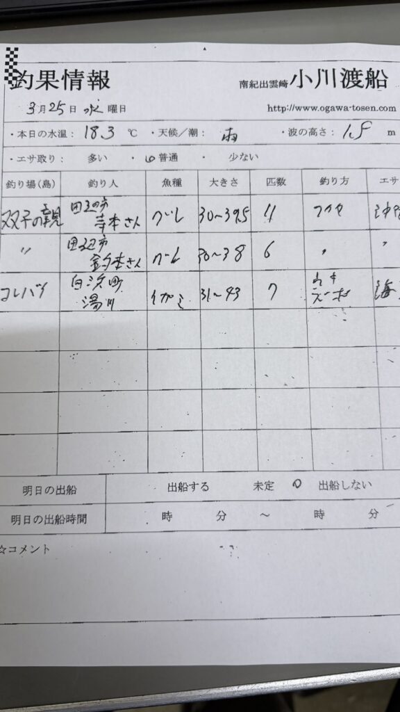 3/25串本町出雲・小川渡船さん釣果