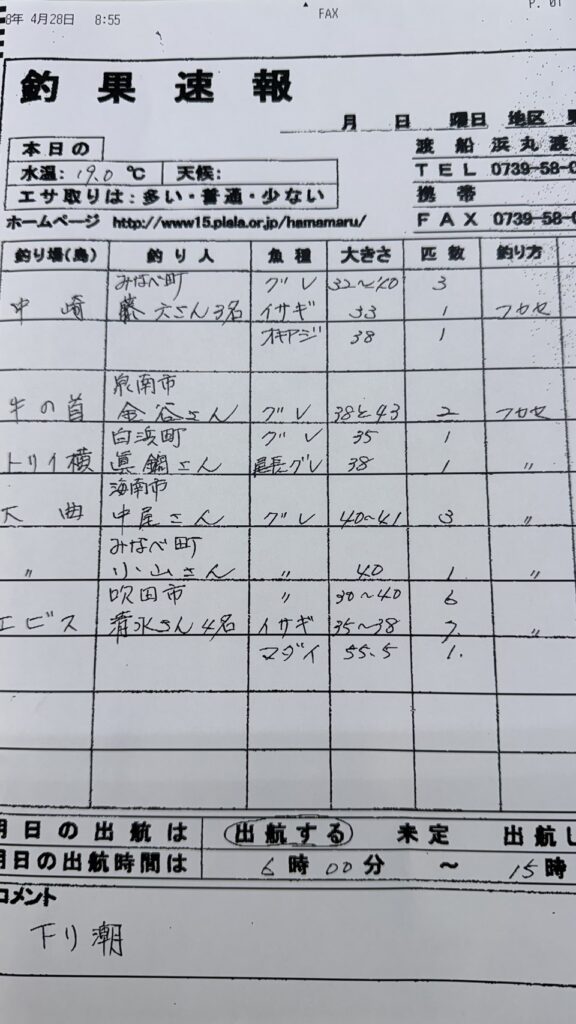 3/27すさみ町見老津・浜丸渡船さん釣果 2026 3/27 【渡船釣果】すさみエリア 2026年3月27日 【渡船釣果】すさみエリア よかったらシェアしてね! URLをコピーしました! URLをコピーしました! 3/27串本町田子・双島マリンクラブ渡船さん釣果 3/27 みなべ町 築山渡船さん釣果 この記事を書いた人 tsuttarou 関連記事 3/30すさみ町見老津・浜丸渡船さん釣果 2026年3月30日 3/29すさみ町 岩元渡船さん釣果 2026年3月29日 3/29すさみ町江須崎・橋本渡船さん釣果 2026年3月29日 3/29すさみ町見老津・浜丸渡船さん釣果 2026年3月29日 3/29すさみ町江須崎・酒井渡船さん釣果 2026年3月29日 3/28すさみ町見老津・浜丸渡船さん釣果 2026年3月28日 3/28すさみ町江須崎・酒井渡船さん釣果 2026年3月28日 3/28すさみ町江須崎・橋本渡船さん釣果 2026年3月28日