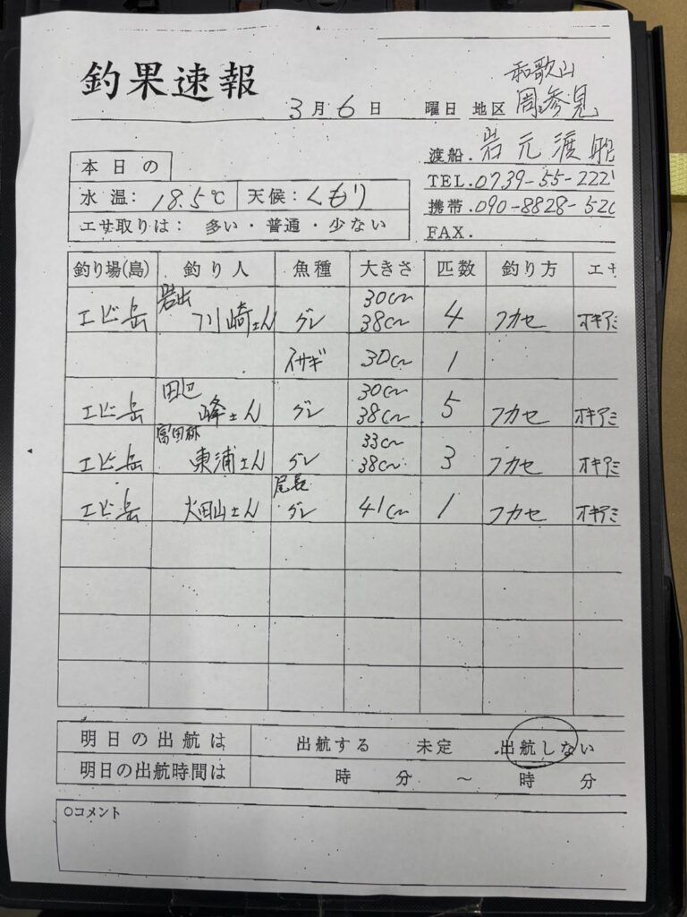 3/6 すさみエリア 岩元渡船さん釣果