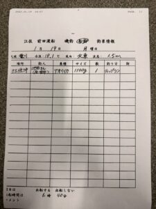 寒波前に田辺市の堤防にて、チヌ(黒鯛)釣りに出かけた夜勤スタッフ。