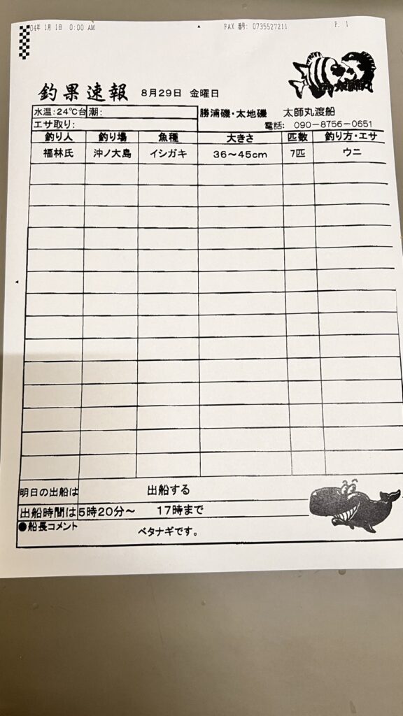 8/29太地町・太師丸渡船さん釣果 2025 8/29 【渡船釣果】串本・太地・勝浦エリア 2025年8月29日 【渡船釣果】串本・太地・勝浦エリア よかったらシェアしてね! URLをコピーしました! URLをコピーしました! 8/29串本町出雲・小川渡船さん釣果 8/29那智勝浦町・清丸渡船さん釣果 この記事を書いた人 tsuttarou 関連記事 1/21 那智勝浦町・清丸渡船さん釣果 2026年1月22日 1/22 太地町・太師丸渡船さん釣果 2026年1月22日 1/22 串本町出雲・小川渡船さん釣果 2026年1月22日 1/21串本町樫野・池畑渡船さん釣果 2026年1月21日 串本町袋 かわばた渡船さん釣果 2026年1月20日 1/20那智勝浦町・清丸渡船さん釣果 2026年1月20日 1/20串本町出雲・小川渡船さん釣果 2026年1月20日 1/19那智勝浦町・清丸渡船さん釣果 2026年1月19日