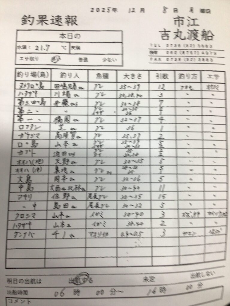 12/8市江 吉丸渡船さん釣果