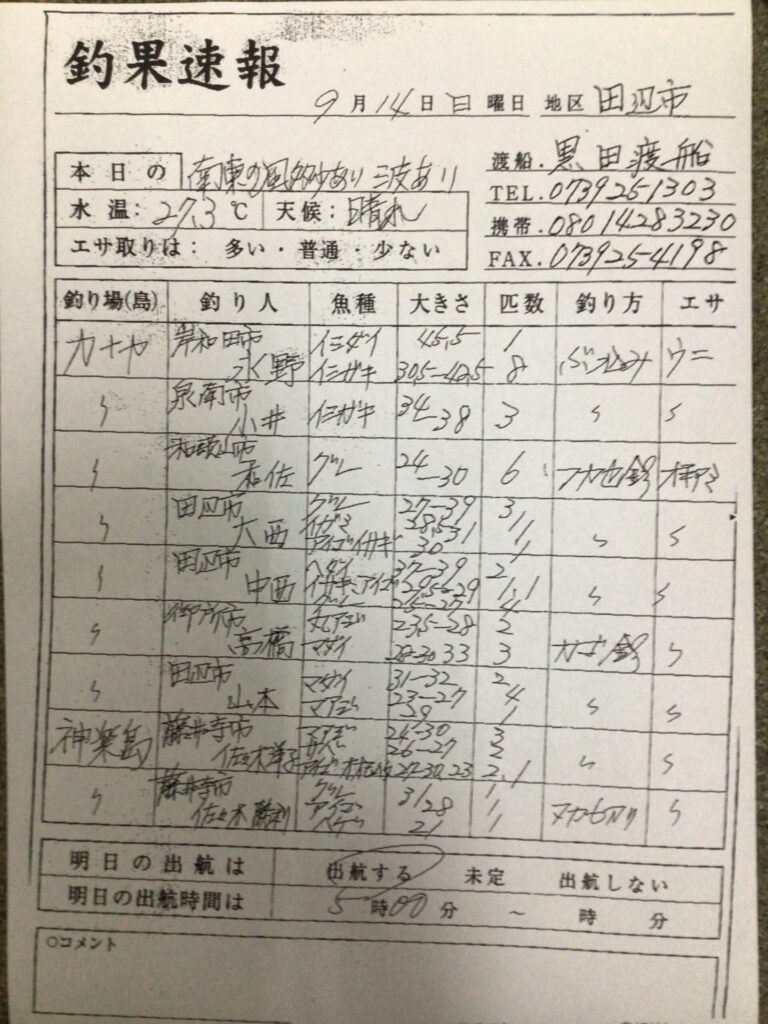9/14(日)田辺・黒田渡船さんの釣果 2025 9/14 【渡船釣果】みなべ・田辺エリア 2025年9月14日 【渡船釣果】みなべ・田辺エリア よかったらシェアしてね! URLをコピーしました! URLをコピーしました! 9/14(日)みなべ町 うえひら渡船さん釣果 9/15太地町・太師丸渡船さん釣果 この記事を書いた人 tsuttarou 関連記事 1月21日(水)みなべ町 うえひら渡船さん釣果 2026年1月21日 1/20 みなべ町 築山渡船さん釣果 2026年1月21日 1/19 みなべ町 築山渡船さん釣果 2026年1月19日 1/19 みなべ町 うえひら渡船さん釣果 2026年1月19日 1/19 田辺・黒田渡船さんの釣果 2026年1月19日 1/18(日)田辺・黒田渡船さんの釣果 2026年1月18日 1/18(日)みなべ町 築山渡船さん釣果 2026年1月18日 1/18(日)みなべ町 うえひら渡船さん釣果 2026年1月18日