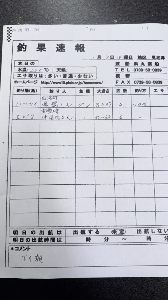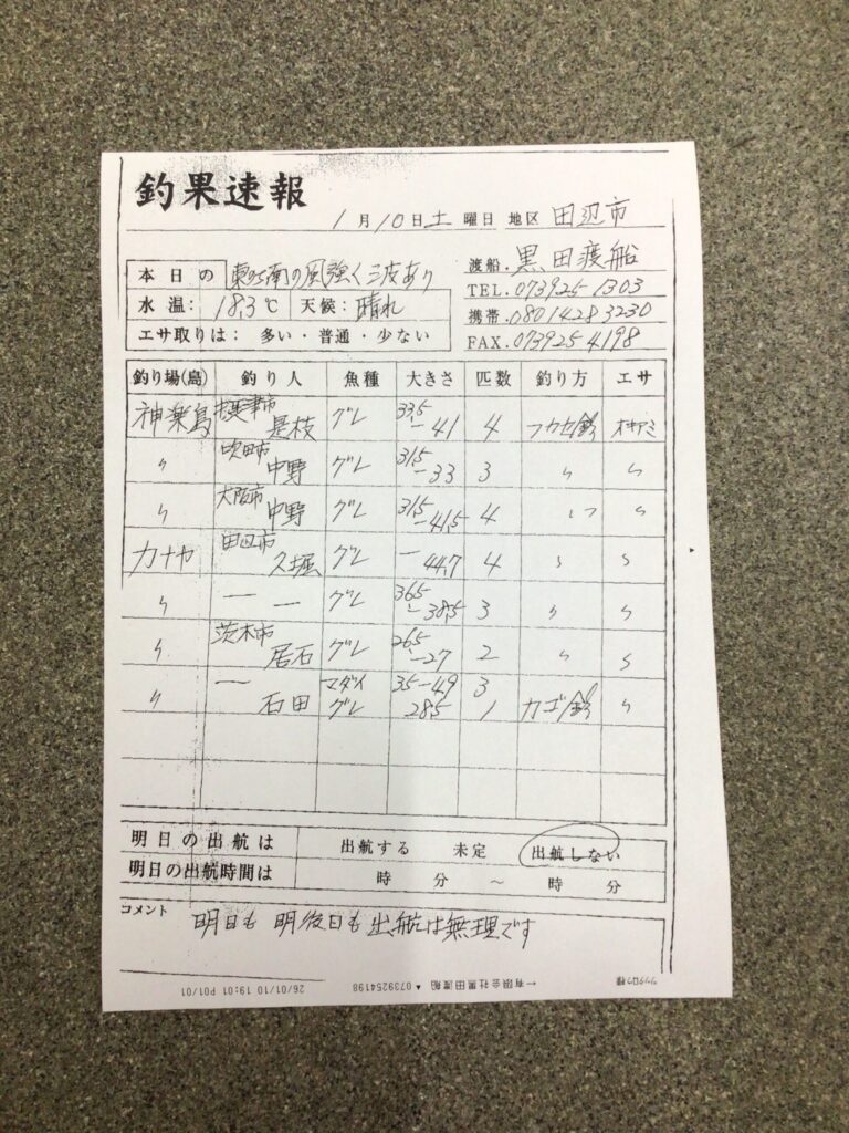 1/7すさみ町見老津・浜丸渡船さん釣果